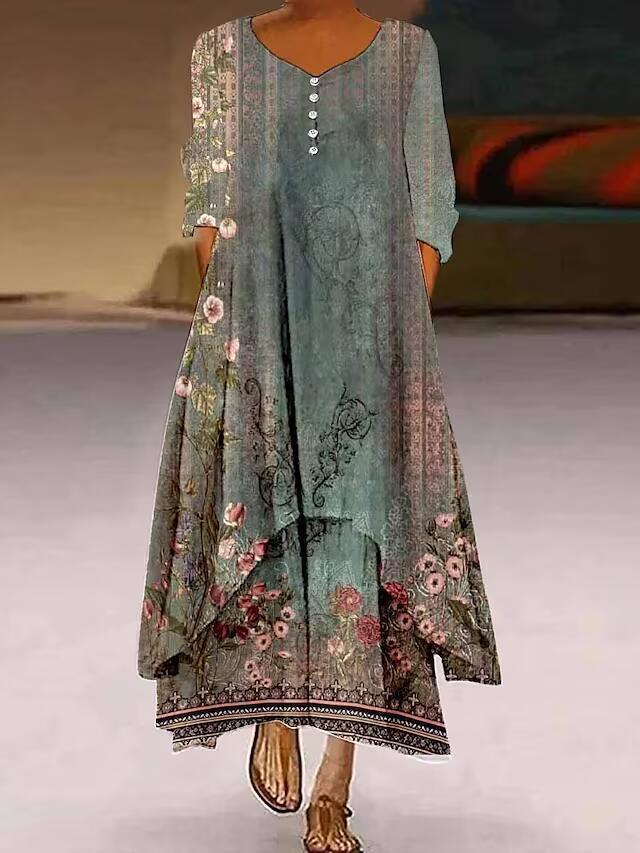 Featuring a breathable, airy fit, this swing style dress with its irregular hemming creates a fancy and fashionable look. Long-sleeves and dress length provides style, comfort, and can suit varying occasions.